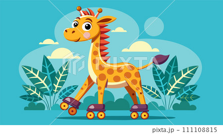 Cheerful Cartoon Giraffe On Roller Skates In A…のイラスト素材 [111108815
